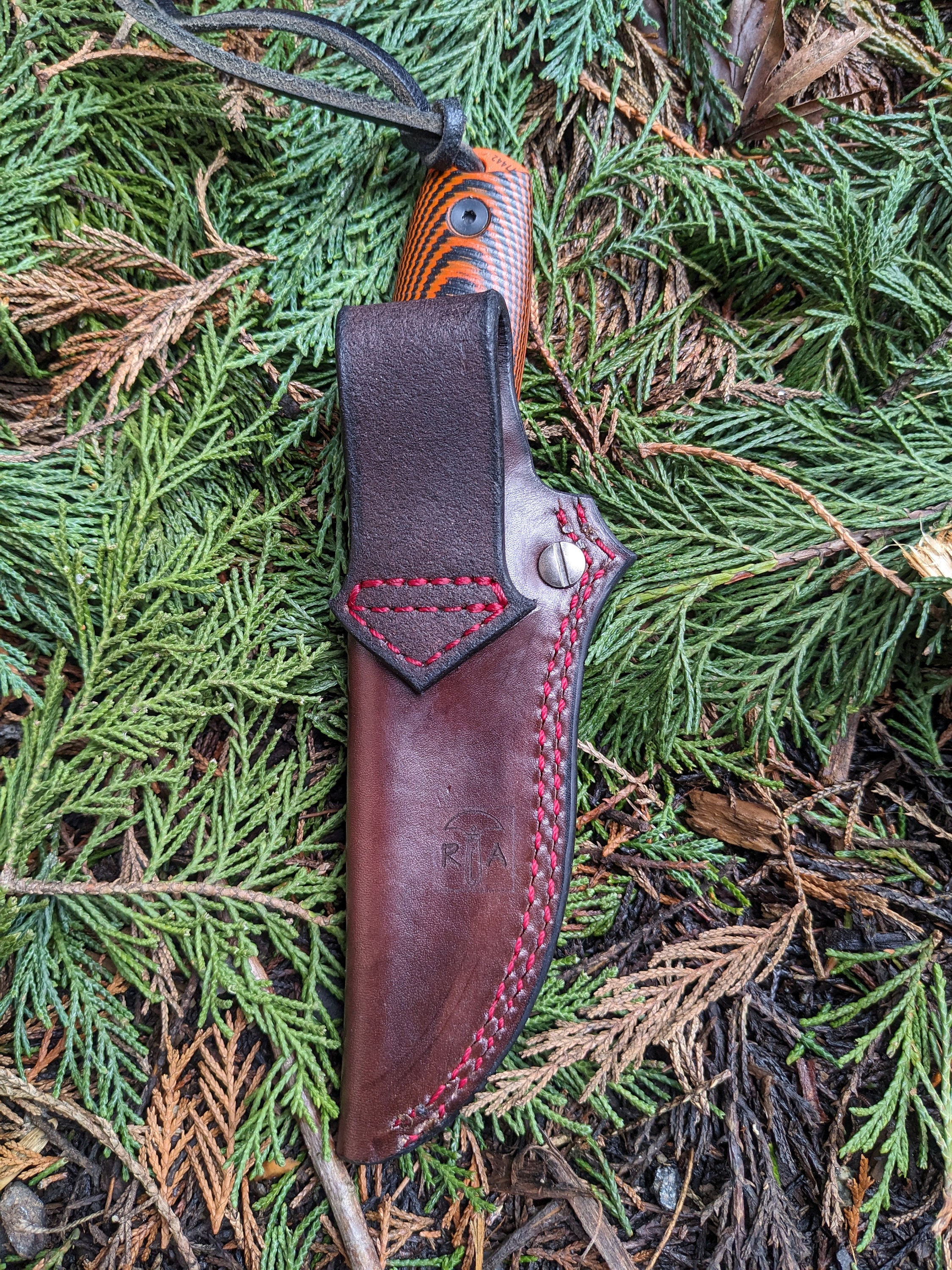 This sheath is my own design that I cut by hand, dye, stitch and wetform all in my shop.