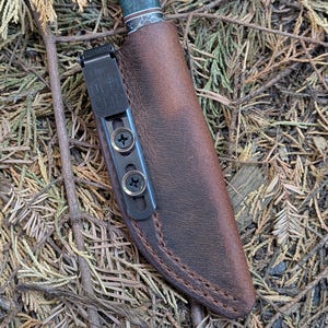 You bought a nice knife, and you love to use it. The only problem is that the sheath it came with is frankly, well, sub par. This sheath replaces the OEM leather with about twice the material thickness as well as good retention from wet forming and hardening. Reinforced with metal posts at the opening and retention point for longevity.